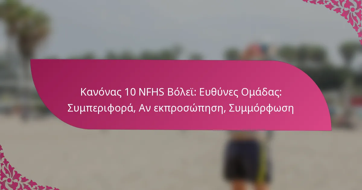 Ο κανόνας 10 της NFHS καθορίζει τις ευθύνες των ομάδων σχετικά με τη συμπεριφορά, την εκπροσώπηση και τη συμμόρφωση κατά τη διάρκεια των διαγωνισμών βόλεϊ. Η κατανόηση αυτών των ευθυνών βοηθά στη διασφάλιση του fair play και του αθλητισμού, ενώ διευκρινίζει επίσης τις συνέπειες των παραβάσεων.