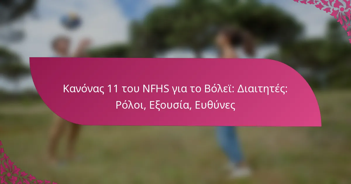 Ο Κανόνας 11 του NFHS για το βόλεϊ καθορίζει τους βασικούς ρόλους, την εξουσία και τις ευθύνες των διαιτητών κατά τη διάρκεια των αγώνων βόλεϊ. Αυτοί οι διαιτητές είναι ζωτικής σημασίας για τη διατήρηση της τάξης και την εξασφάλιση δίκαιης παιχνιδιού, καθώς λαμβάνουν κρίσιμες αποφάσεις και διαχειρίζονται τη ροή του παιχνιδιού, ενισχύοντας έτσι την συνολική ποιότητα του αθλήματος.