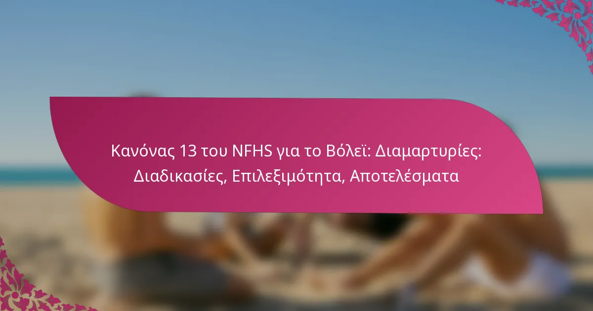 Ο κανόνας 13 του NFHS για το βόλεϊ περιγράφει τις διαδικασίες για την υποβολή διαμαρτυριών που σχετίζονται με την επιλεξιμότητα και τη διεξαγωγή του αγώνα. Αυτός ο κανόνας είναι απαραίτητος για τη διατήρηση της δικαιοσύνης και της ακεραιότητας του αθλήματος, επιτρέποντας στις ομάδες να αμφισβητούν αποφάσεις που μπορεί να επηρεάσουν το αποτέλεσμα ενός αγώνα.