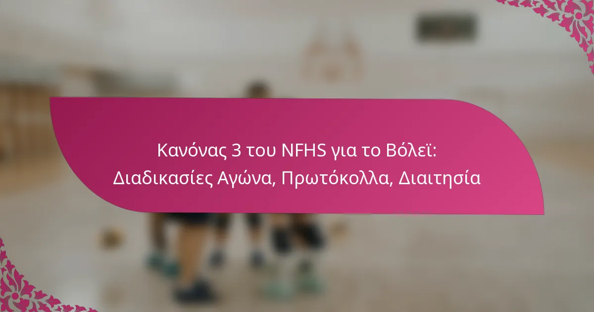 Ο Κανόνας 3 του NFHS για το βόλεϊ περιγράφει τις βασικές διαδικασίες αγώνα, τις ευθύνες των διαιτητών και τα πρωτόκολλα που διέπουν τη ροή ενός αγώνα βόλεϊ. Η κατανόηση αυτών των συνιστωσών διασφαλίζει ομαλή διεξαγωγή του παιχνιδιού και τήρηση των κανονισμών.