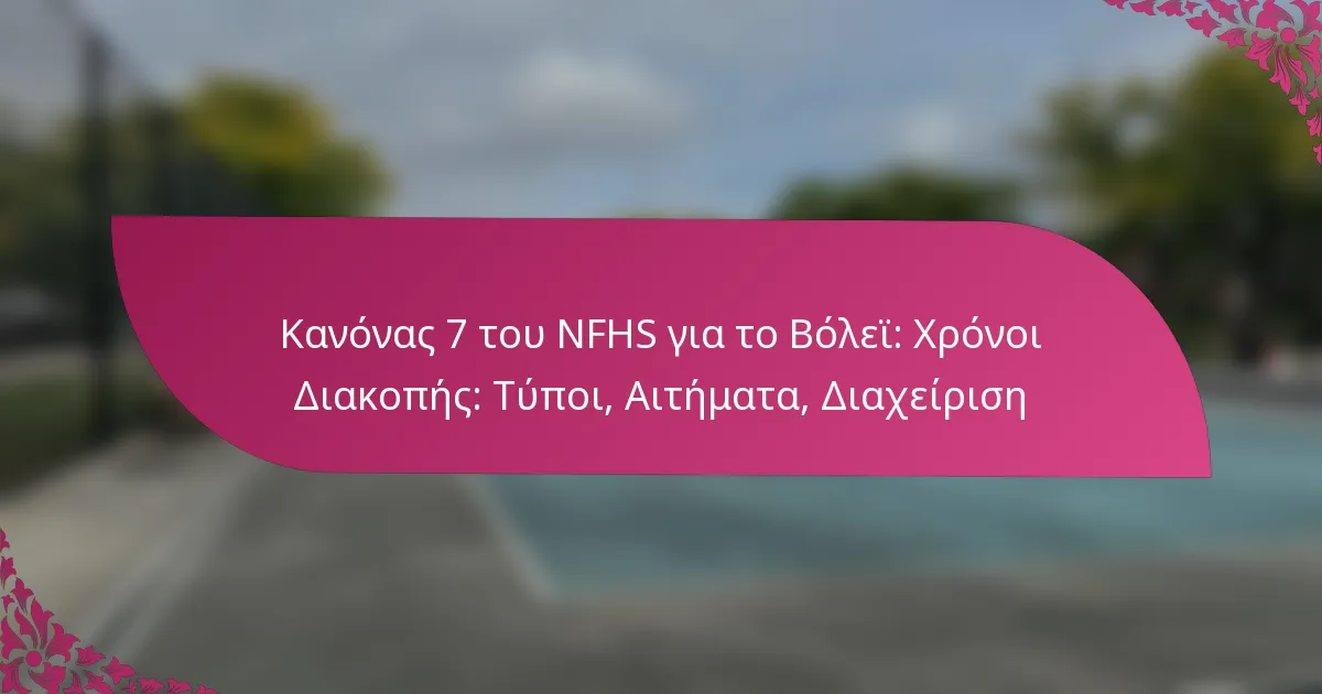 Ο κανόνας 7 της NFHS παρέχει ολοκληρωμένες κατευθυντήριες γραμμές για τη διαχείριση των χρονοκαθυστερήσεων στο βόλεϊ, συμπεριλαμβανομένων των τύπων τους και των ευθυνών των παικτών και των διαιτητών. Οι χρονοκαθυστερήσεις είναι απαραίτητες για τις ομάδες ώστε να επανασυνδεθούν, να στρατηγιστούν και να αντιμετωπίσουν την κόπωση των παικτών. Υπάρχουν τρεις κύριοι τύποι χρονοκαθυστερήσεων – ομαδικές, επίσημες και ιατρικές – κάθε μία με συγκεκριμένους κανόνες που επηρεάζουν τη δυναμική του παιχνιδιού. Η εξοικείωση με τις διαδικασίες για την αίτηση και τη διαχείριση αυτών των χρονοκαθυστερήσεων είναι κρίσιμη για την αποτελεσματική διεξαγωγή του παιχνιδιού.
